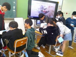 今日は、トヨタオンライン授業ということで、自動車産業や自動車の生産に関する工夫などをWeb会議ツールを活用して行いました。事前に郵送されたテキストに工場の様子からわかったことをまとめたり質問に答えてもらったりしました。