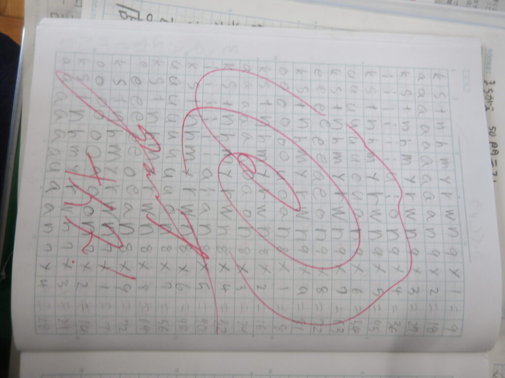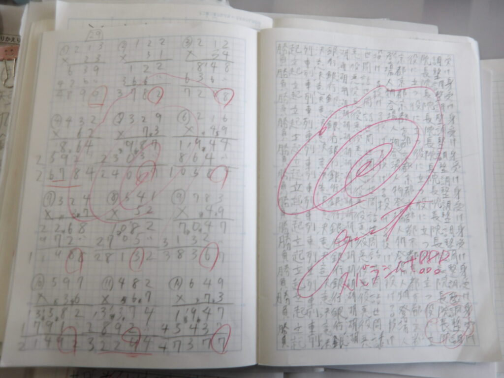 友達の自主学習の例をお見せします。1ページに埋める量や取り組むページ数は、その子の知識量・努力値を表しているなぁと思います。1ページにたくさん書いている子や宿題に出ているページ以上をやる子はやはり、50問テストではコンスタントに90点以上を取っているし、1つのことに粘り強く取り組んでいるし、算数など練習問題に取り組む姿や速さに表れているなと感じます。まあ、一概には言えないですけどね。俯瞰して見ていて、そう感じているだけです。残りの日数、目的・目標をもって取り組みましょう!