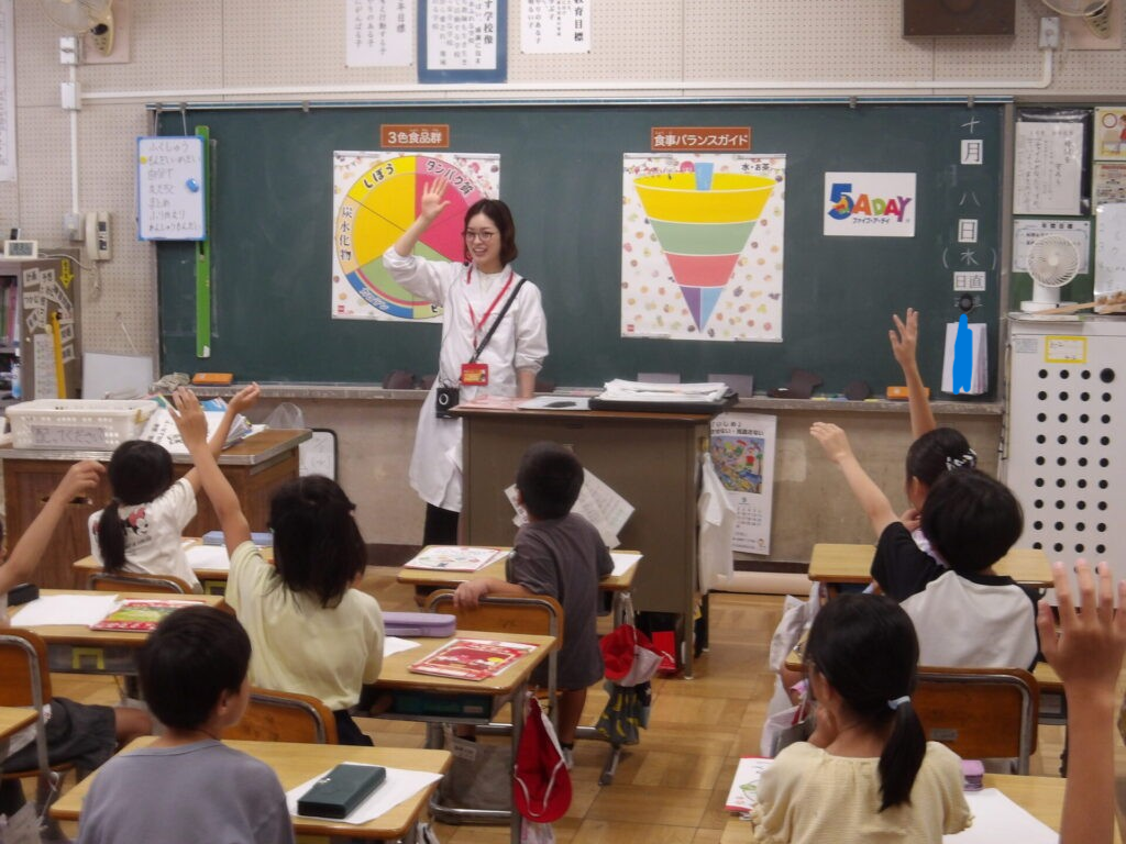 ベルク見学(1) 2025年10月10日 最終更新日時 : 2025年10月10日 kumagaya_contribute ベルク本社の方が出前授業をしてくださいました。栄養素の話や食事のバランス、献立の配置などクイズを交えて教えてくださいました。やはり朝ご飯を食べることは大切みたいですね。健康第一で生活しましょう!