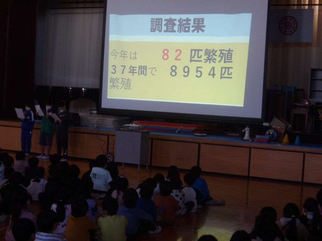 ムサシトミヨ繁殖調査(児童集会)