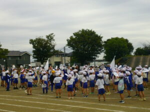 児童集会では、はじめに自己紹介、次に陸上フェスティバル壮行会をしました。自己紹介では、名前以外に代表委員になった理由やめあてを堂々と話せました。壮行会では、4・5年生が元気よく応援しました。全校での呼びかけで6年生が当日全力でがんばることを応援しています。