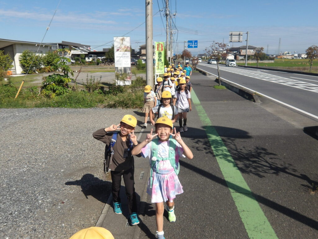 今回の第1回社会科見学で一番気にしていたことは、歩道での歩き方です。普段の学校生活や登下校での話を聞くと、少し心配だなと思うところもあったのですが、実際歩いてみたら全員しっかり歩けていました!緑の線から出ることもなく、横断歩道では4列を守っていました。素晴らしいです、続けましょう!
