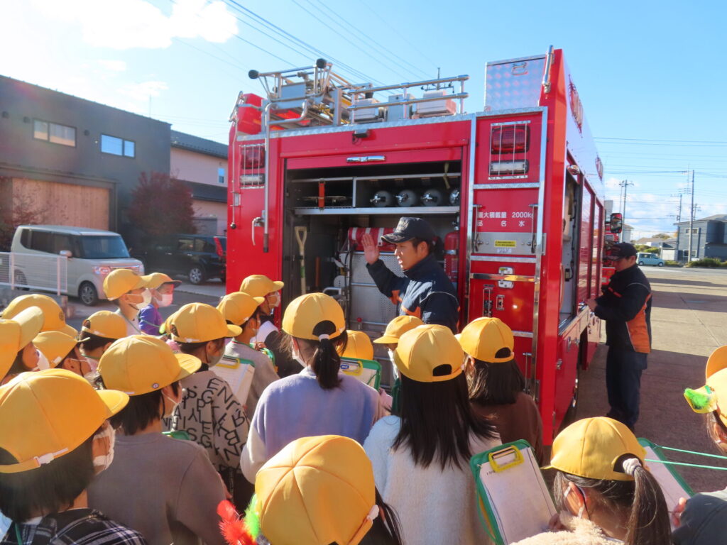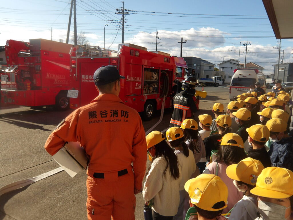 社会科見学②(社会) 2025年11月28日 最終更新日時 : 2025年11月28日 kumagaya_contribute 社会科見学では熊谷消防本部にも行きました。消防車や救急車の中を実際に見たり、消防署の中を見たりしました。授業では学べなかったことを体験できたので非常にいい機会だったと思います。おうちでも感想を聞いてみてください。