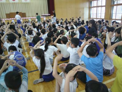 校歌を1年生に紹介したり、佐谷田小のクイズで盛り上がりました。