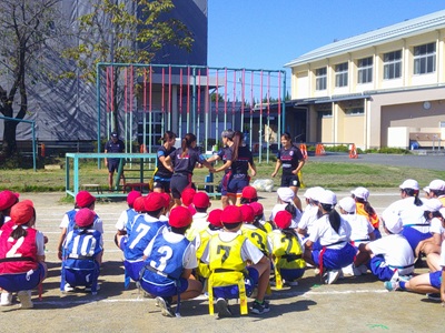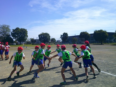 今日はアルカス熊谷の選手たちからタグラグビー教室をおこなっていただきました。10月とは思えない暑さの中でしたが、基本の動きからルール、試合まで教わり、チームごとに楽しそうに活動しました。tetoruでお知らせのとおり、今、来月のタグラグビー大会出場者募集中です。12月には久下小との親善大会を行います。