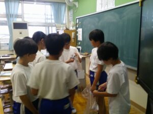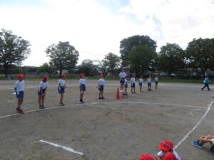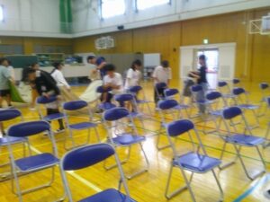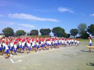 今日は運動会の代表リレーの選手発表と徒競走のレースとコースの発表をしました。その後、6人技、7人技の練習を始めました。はじめてなので、体育館でそのぞれの役割のポイントやコツをおさえてから取り組みました。