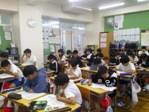 図工『あんなところがこんなところに』では、身の回りの場所を色画用紙や折り紙を使って異なる場所に変更する学習をしました。床に足跡をつけたら・・・?窓を水槽に見立てて・・・?など班で発想を広げて創作しています。次回は実際には […]