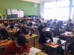 林間学校の部屋ごとの係打ち合わせを行いました。国立赤城青少年交流の家の活動の仕方の動画(布団の片付け・清掃・退所点検・入浴・食事)を視聴したり、しおりでいつだれがどんな役割を果たすか確かめたりしました。